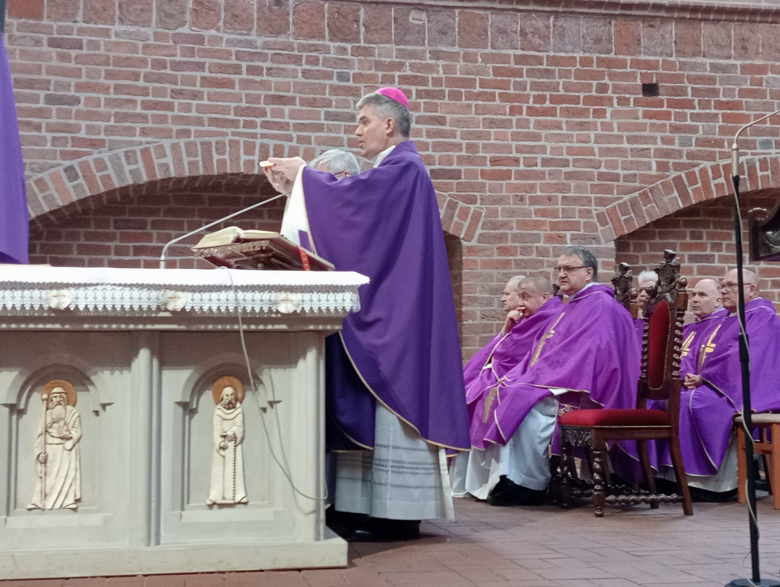 Uroczystej Mszy Świętej przewodniczył Jego Ekscelencja Bp. Zbigniew Zieliński, obecni byli księża Pallotyni, obecny oraz przeszli proboszczowie.