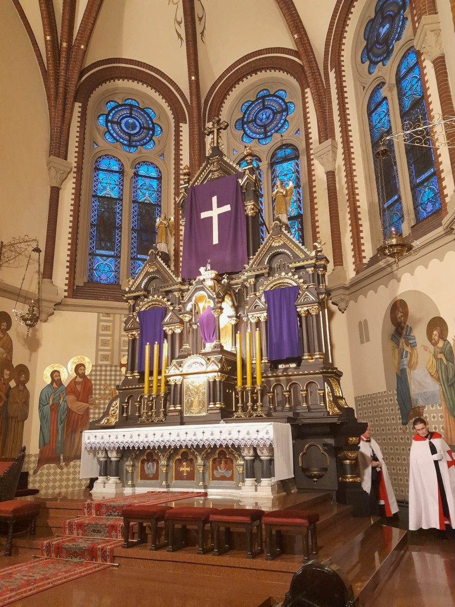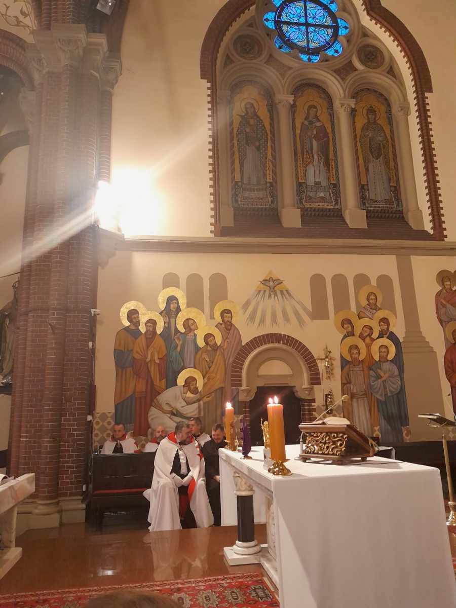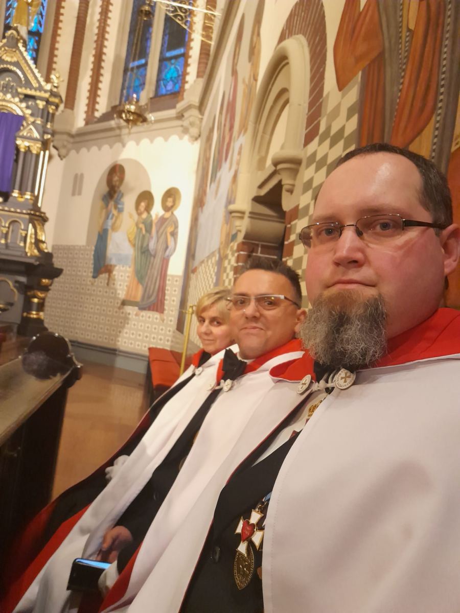 Tradycyjnie w trzecią środę miesiąca 20 marca 2024 roku Rycerze i Damy Wielkiego Przeoratu Polski Zakonu Rycerskiego Świątyni Jerozolimskiej modlili się w Kościele pw. Świętej Anny w Zabrzu o nawrócenie wrogów Kościoła za wstawiennictwem Świętego Maksymiliana Marii Kolbe.