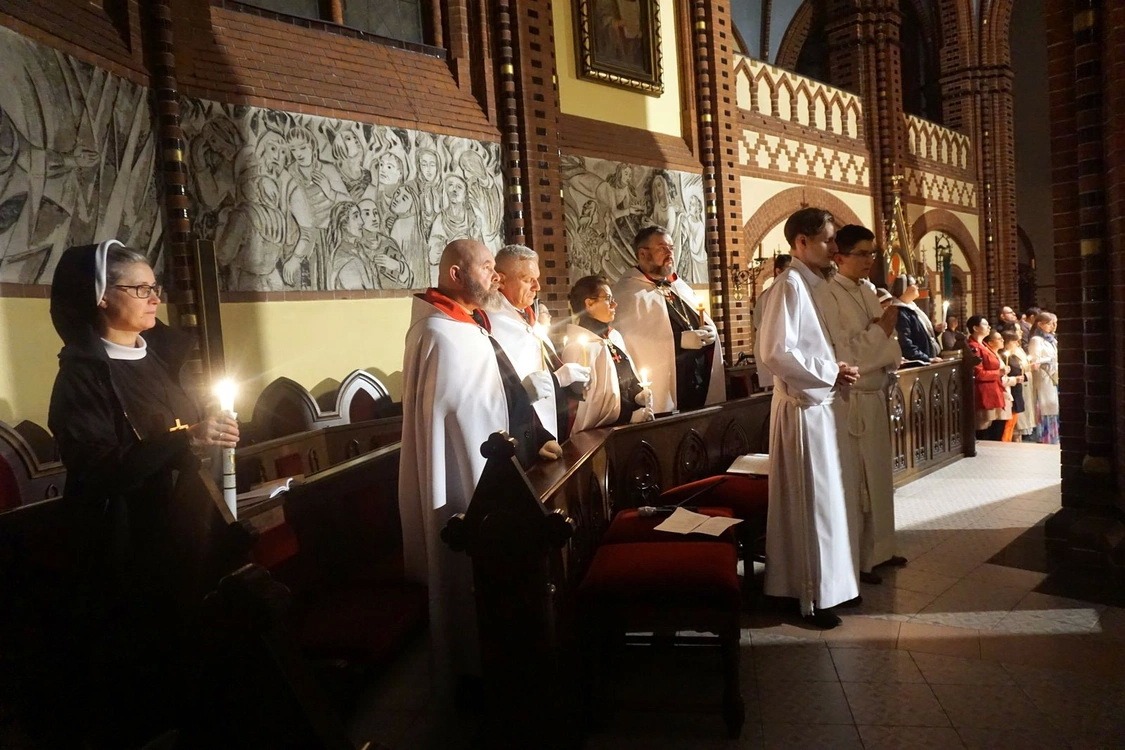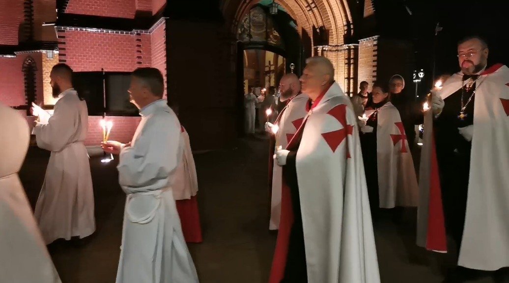 W Wielką Sobotę 30 marca 2024 Rycerze i Damy Wielkiego Przeoratu Polski Zakonu Rycerskiego Świątyni Jerozolimskiej uczestniczyli w Wigilii Paschalnej z Rezurekcją w Katedrze Św. Apostołów Piotra i Pawła w Gliwicach. Prawie trzygodzinna liturgia rozpoczęła się od poświęcenia ognia przed kościołem i przygotowania paschału, a zakończyła procesją rezurekcyjną i błogosławieństwem Najświętszym Sakramentem. Uroczystości przewodniczył i homilię wygłosił Jego Ekscelencja ksiądz Biskup Andrzej Iwanecki, który w kazaniu w odniesieniu do tajemnicy Zmartwychwstania mówił o cnotach wiary, nadziei i miłości.
