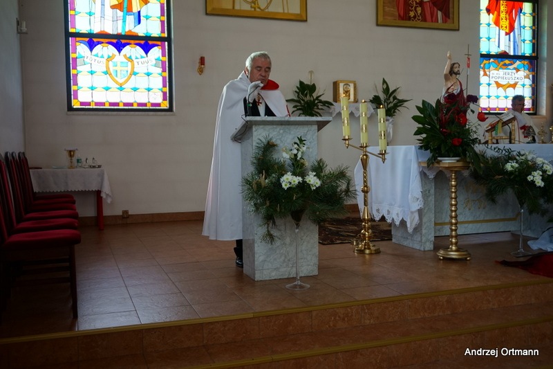 Na ołtarzu ustawiono relikwie św. Wojciecha bp i męczennika, św. Andrzeja Boboli kapłana i męczennika, św. Maksymiliana Marii Kolbe kapłana i meczennika, bł. Ks. Jerzego Popiełuszki męczennika i św. Szarbela kapłana i wyznawcy. Przewodniczył jej kapelan Preceptorii Pomorza Templariuszy ks. Jarosław Brylowski.
