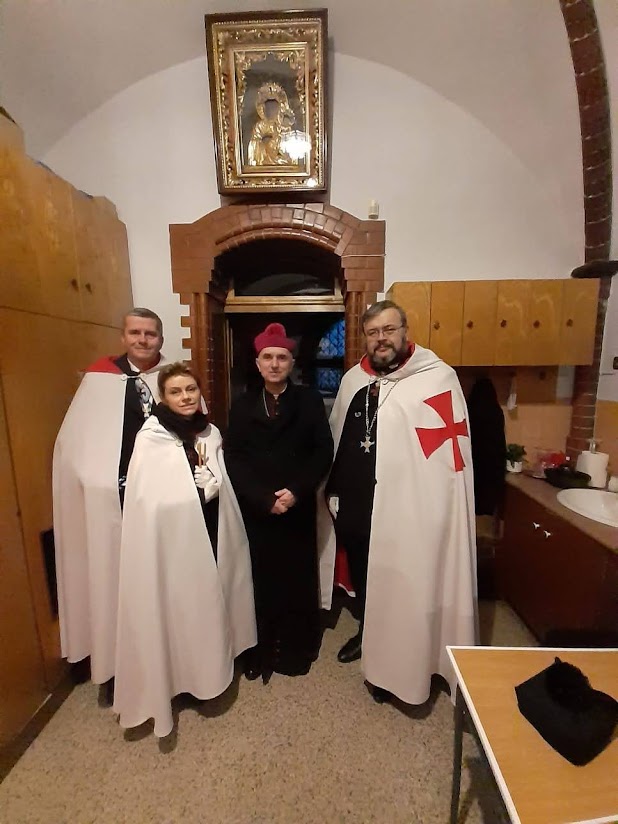 Wielki Czwartek w Gliwickiej Katedrze 7 kwietnia 2023 Olek Peterko KOTJ Do południa Rycerze brali udział w Uroczystej Mszy Krzyżma świętego a wieczorem w uroczystościach Mszy Wieczerzy Pańskiej. Po mszy spotkali się z Księdzem Biskupem Andrzejem Iwaneckim